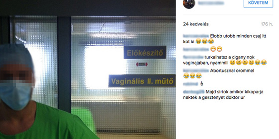 Egy olvasó hívta fel az Index.hu figyelmét arra a három évvel ezelőtt feltöltött fotóra, melynek kommentárja durva, rasszista kijelentéseket tartalmaz.„Előbb-utóbb minden csaj itt köt ki” – szöveggel pózol a vaginális műtő előtt egy férfi műtős felszerelésben egy debreceni kórházban, a kommenteknél pedig azt írja, hogy csak abortusznál turkálna örömmel cigány nők vaginájában – olvasható a cikkben.
