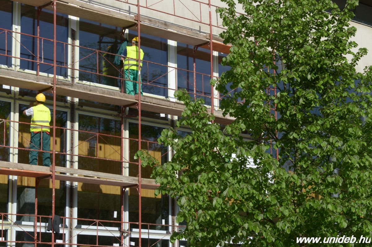 A két hét múlva befejeződő munkálatok során 625 négyzetméternyi üvegfelületet cserélnek ki, illetve azt is megoldják a szakemberek, hogy kívülről ne látszódjon a belső radiátorsor. A főbejárati ajtó fotocellás, a másik bejárat pedig akadálymentes lesz. A munkák ideje alatt is folyamatos az oktatás az épületben, a kivitelezőtől azt kérte az intézmény, hogy a felújítást úgy végezze, hogy az az egyetemi mindennapokban ne okozzon fennakadást.