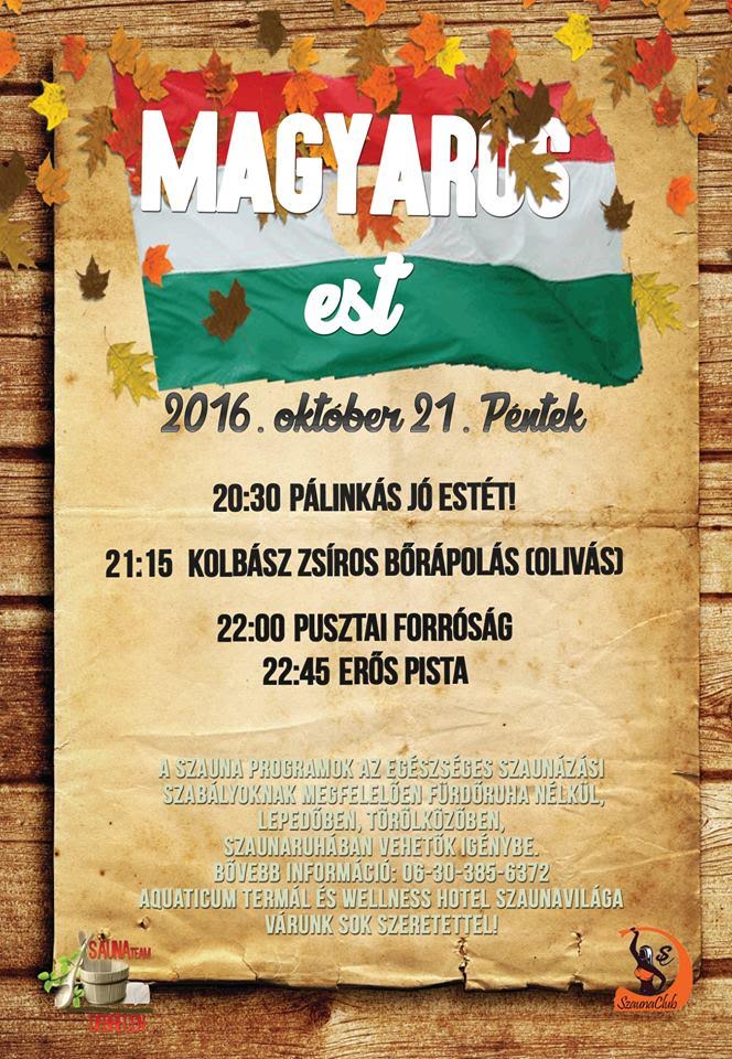 Péntek esti magyaros vigadalom a Szaunavilágban