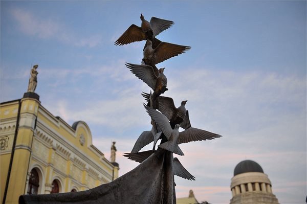 Az 1956-os forradalom és szabadságharc debreceni hőseinek és áldozatainak tiszteletére a 60. évfordulón emelt, Győrfi Lajos szobrászművész által készített emlékmű a debreceni Csokonai Nemzeti Színház előtt az avatóünnepség napján, 2016. október 23-án. MTI Fotó: Czeglédi Zsolt