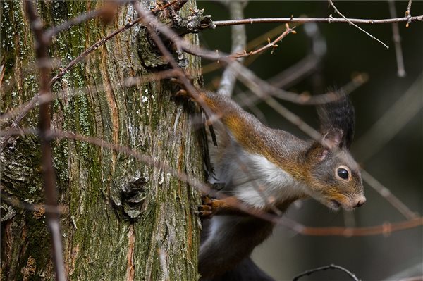 Európai mókus, más néven vörös mókus (Sciurus vulgaris) Debrecenben 2017. március 6-án. MTI Fotó: Czeglédi Zsolt