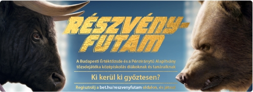 Véget ért a Budapesti Értéktőzsde (BÉT) és a Pénziránytű Alapítvány közös középiskolás diákoknak szóló 4 hetes online tőzsdejátéka, az úgynevezett Részvényfutam, a játékban az első helyezést a debreceni Tóth Árpád Gimnázium diákja szerezte meg, aki egyebek mellett egy 100 ezer forint értékű könyvutalvánnyal gazdagodott, valamint iskolájának is nyert fél millió forintot – közölte a BÉT csütörtökön az MTI-vel.