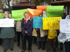 Az ételosztó kis közösség pár perces tiltakozó akcióján Nagy Józsefné, a civil szervezet alelnöke többek között arról beszélt, hogy