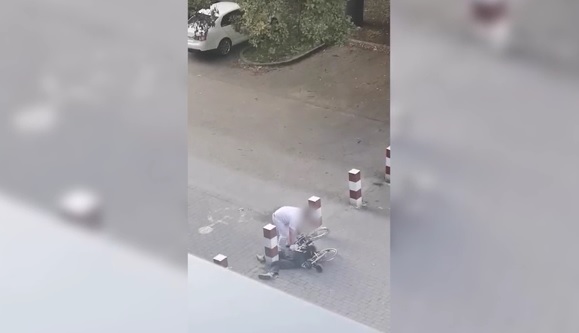 Az alig egyperces felvétel szeptember 19-én, csütörtökön készült a Borsod-Abaúj-Zemplén Megyei Központi Kórház udvarán, és a videó elején az látszik, hogy egy fehér ruhás betegkísérő egy földre borult, félig a kerekesszékben ülő – és egyébként teljesen magatehetetlen – beteg felett matat, majd többször is a félig földön fekvő betegbe rúg