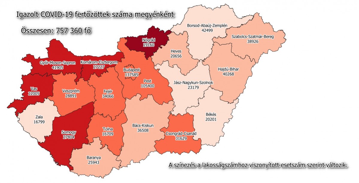 2527 az új fertőzöttek száma, ezzel a járvány kezdete óta összesen 757 360 főre nőtt a beazonosított fertőzöttek száma. Elhunyt 207 többségében idős, krónikus beteg, így az elhunytak száma 25 787 főre emelkedett. A gyógyultak száma folyamatosan nő, jelenleg 464 750 fő, az aktív fertőzöttek száma pedig 266 823 főre csökkent. 8097 koronavírusos beteget ápolnak kórházban, közülük 925-en vannak lélegeztetőgépen.