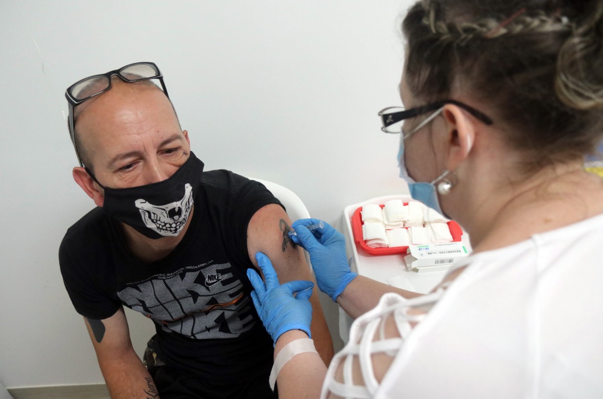 Erdődi István Sándorné ápolónő beolt egy férfit a kínai Sinopharm koronavírus elleni vakcina második adagjával a Borsod-Abaúj-Zemplén Megyei Központi Kórház és Egyetemi Oktatókórházban kialakított oltóponton Miskolcon 2021. június 13-án.