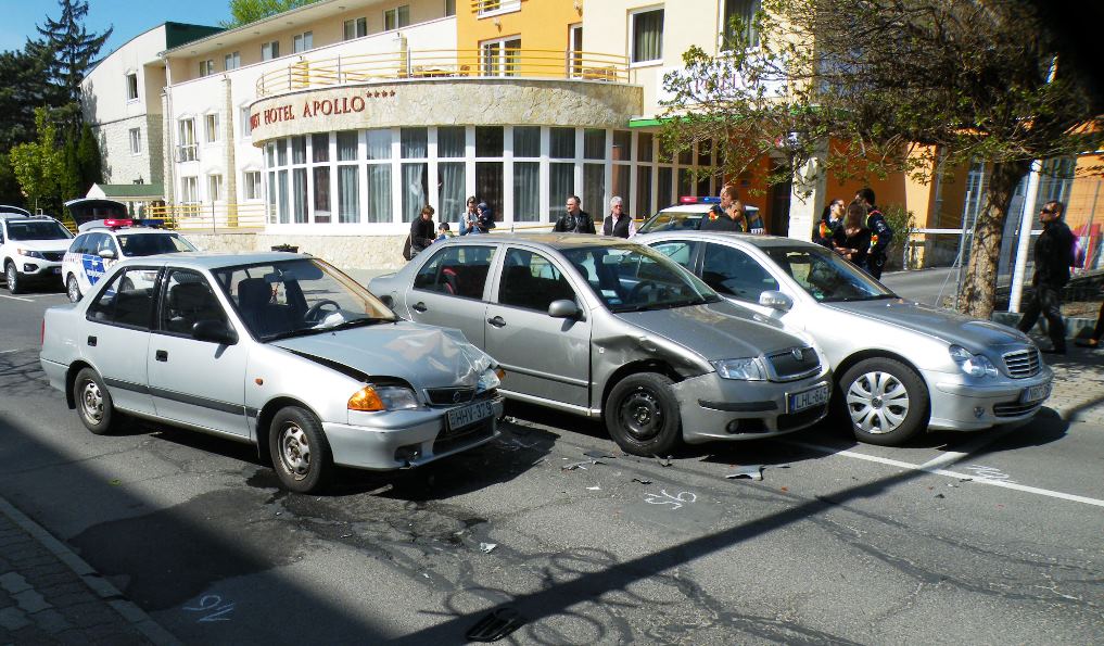 Egy Skoda típusú gépjárművel közlekedett 2017. április 17-én 9 óra körül egy férfi Hajdúszoboszlón. A nyíregyházi férfi egy szálloda parkolójából kanyarodott ki, amikor feltehetőleg nem adta meg az elsőbbséget a Mátyás Király sétányon közlekedő Suzuki típusú gépjárműnek és összeütköztek. A baleset következtében egy, a sétányon parkoló gépkocsi is megrongálódott, valamint a Suzuki vezetője és utasa az elsődleges orvosi vélemény alapján könnyű sérüléseket szenvedtek. A baleset körülményeit a Püspökladányi Rendőrkapitányság vizsgálja.