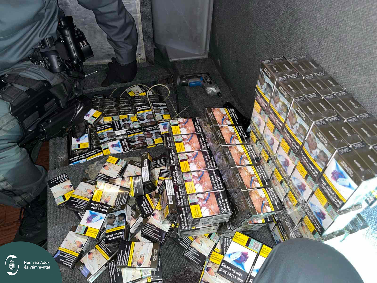 A NAV pénzügyőrei a járműben, a hátsó üléssor alatti gyári üregben 700 doboz török zárjegyes cigarettát találtak. A rejtekhely különlegessége, hogy a csempészárut vékony puha ólomlappal fedték le, amely alkalmas lehet arra, hogy egyes ellenőrzési módszereket blokkoljon.