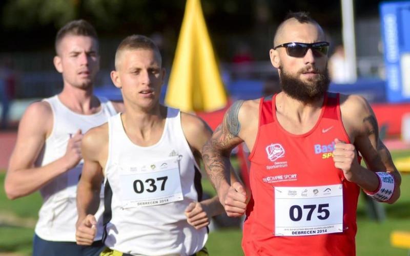 at2A későbbi győztes Helebrandt Máté az Atlétikai Magyar Szuper Liga döntőjének 10000 méteres gyaloglás számában a debreceni Gyulai István Atlétikai Stadionban 2015. szeptember 6-án.