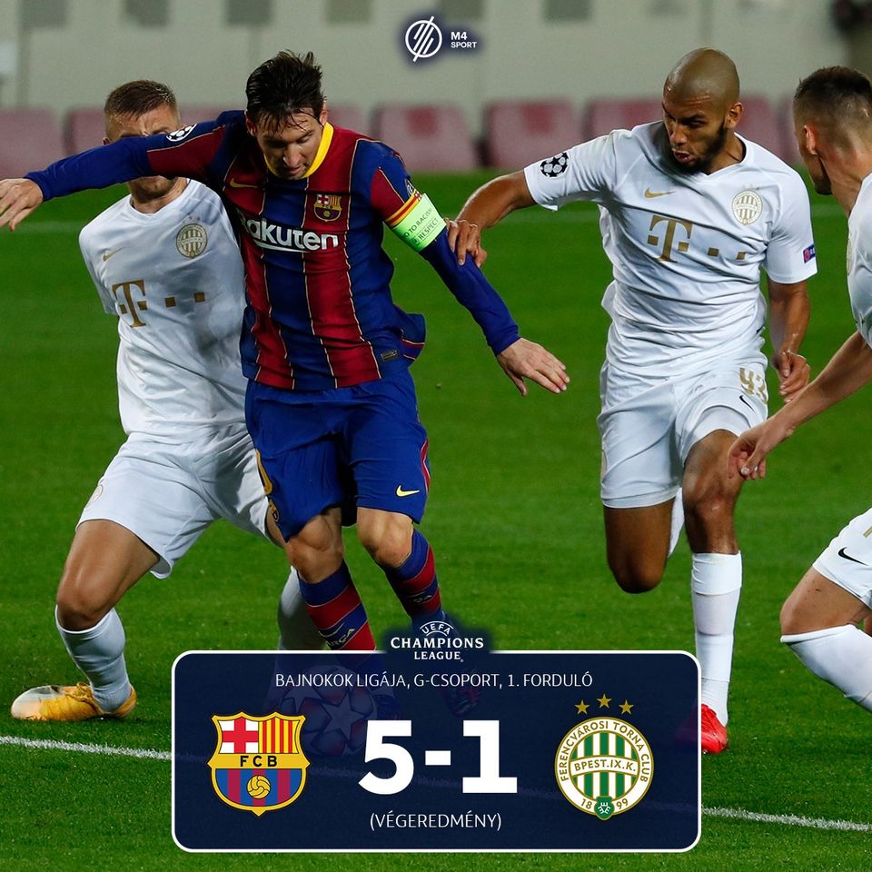 A Ferencváros 5-1-es vereséget szenvedett az FC Barcelona otthonában a labdarúgó Bajnokok Ligája csoportküzdelmeinek keddi nyitányán.
