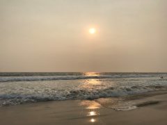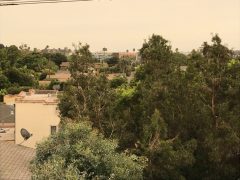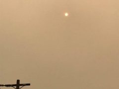 Venice Beach, Los Angeles egyik tengerparti városrésze így nézett ki 2020.09.13-án délután egykor illetve a tengerpart és a házak fölötti ég a naplementében. Az égő erdők füstje apokaliptikus látványt nyújt. Így szabadon látható a Nap. Időközben a füst Magyarország légterét is elérte. Fotók: Vida Virág