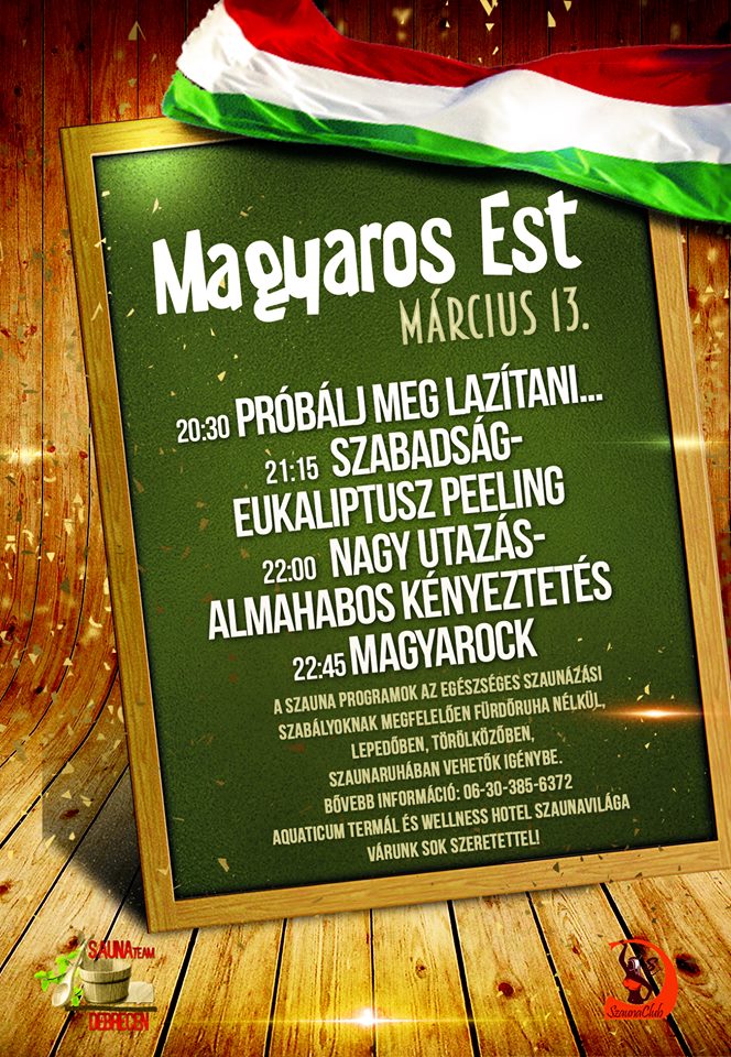 Ezen a héten ismét magyaros esttel várunk Titeket az Aquaticum Szaunavilágban!