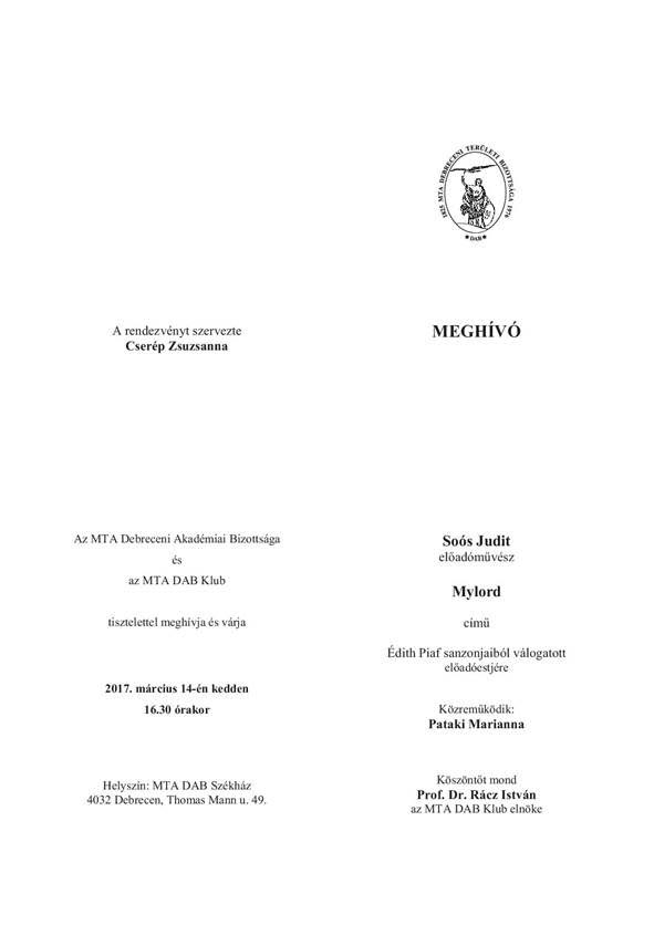 Soós Judit előadóestje.
