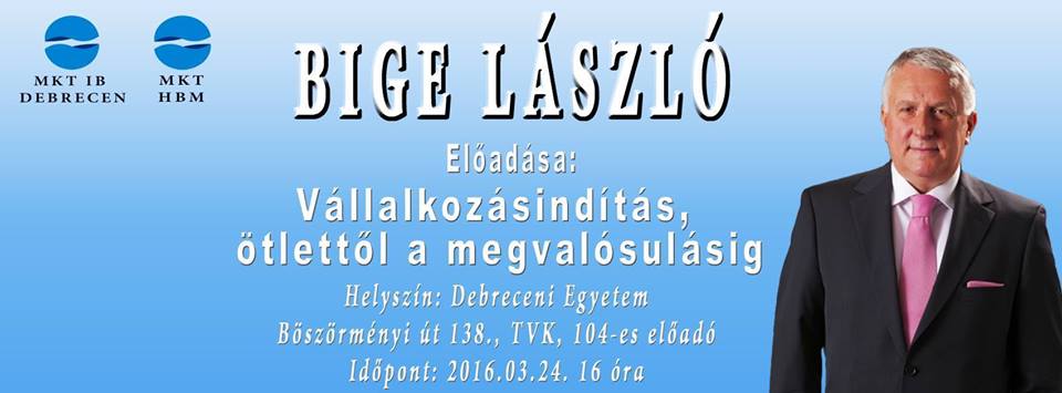 A Magyar Közgazdasági Társaság Debreceni Ifjúsági Bizottságának szervezésében rendezik azt az előadást, melynek témája a vállalkozásindítás lesz.