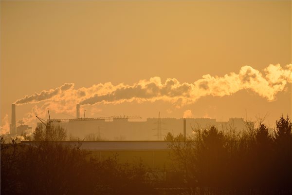 A debreceni erőmű kéményei füstölnek napfelkeltekor Debrecenben 2015. január 7-én. Az Országos Meteorológiai Szolgálat mérései szerint mínusz 13 Celsius-fokra csökkent a levegő hőmérséklete a városban. MTI, fotó: Czeglédi Zsolt