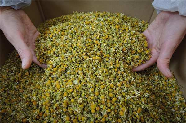 Válogatott kamilla a Herbária Zrt. balmazújvárosi gyógynövény-feldolgozó üzemében 2015. október 16-án. MTI Fotó: Czeglédi ZsoltNégy magyar termékkel, a debreceni páros kolbásszal, a fröccsel, a bajai halászlével és az alföldi kamilla virágzattal bővült a hungarikumok listája október 13-án.