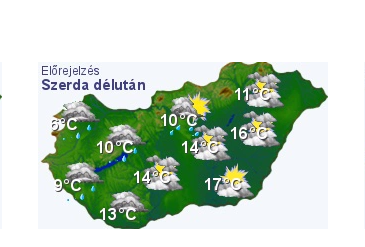 Szerdán a Dunántúlon erősen felhős vagy borult lesz az ég, másutt vékonyabb, szakadozottabb lesz a felhőzet, főként a Tiszántúlon lehetnek hosszabb napos időszakok. Elsősorban a Nyugat- és az Észak-Dunántúlon, estefelé az Északi-középhegység térségében valószínű eső, zápor, a középső területeken egy-egy zivatar sem kizárt. Az északkeleti szél többfelé megélénkül, holnap az Észak-Alföldön meg is erősödik.