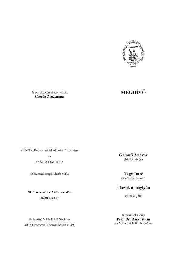 november 16, 2016Szabolcs SzilágyiSzóljon hozzá a Tücsök a máglyán – Galánfi András estje a DAB székházban bejegyzéshez