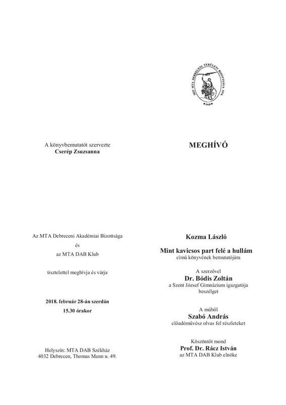január 17, 2018január 18, 2018Szabolcs SzilágyiSzóljon hozzá a Kozma László könyvbemutatója a DAB székházban bejegyzéshez