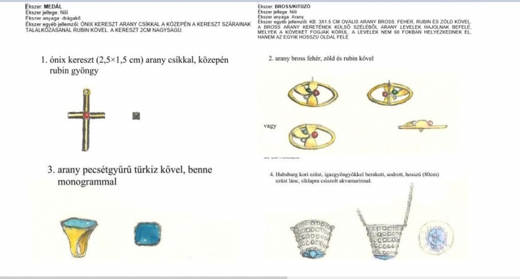 A Győri Rendőrkapitányság 08010/4465/2020. bűnügyi számon nyomozást folytat lopás és más bűncselekmények elkövetése miatt H. Károly Gyula ellen. A férfi az ország több településén követett el bűncselekményeket, és az egyik helyszínről Habsburg korabeli ezüst és arany ékszereket lopott el, amelyek a nyomozás során nem kerültek elő. A rendőrség az ékszereket grafikus szakértő segítségével rekonstruálta.