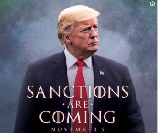 “Szankciók jönnek, november 5-én” – ez a felirat olvasható az amerikai elnök Twitter-bejegyzésében, utalva arra, hogy a 2015-ben az Iránnal megkötött többhatalmi atomalku aláírása után feloldott büntetőintézkedéseket Washington hétfőtől ismét bevezeti.