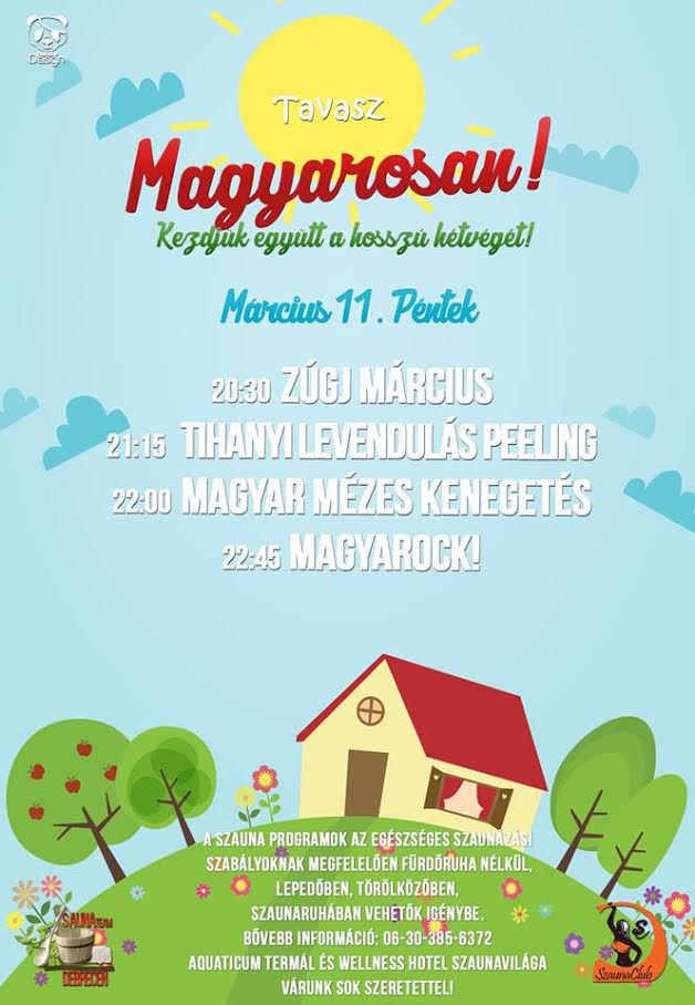 Pénteken egy 4 napos hosszú hétvége veszi kezdetét. Ennek örömére magyaros szaunaesttel kedveskedik vendégeinek az Aquaticum Szaunavilág.